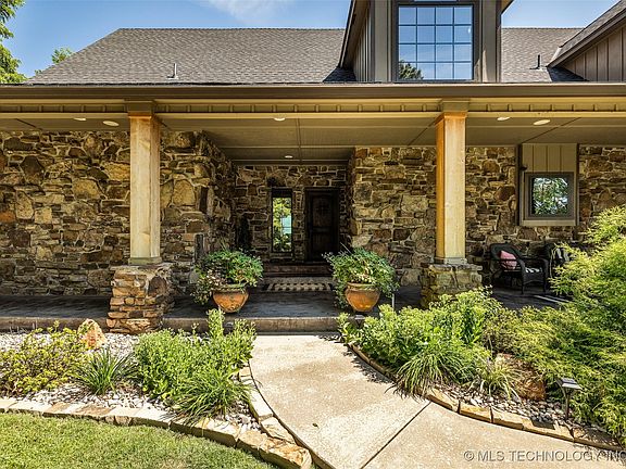 See eagles soaring almost daily from one of the highest elevations on Grand Lake O’ the Cherokees from this fabulous home located in a small, gated neighborhood called Eagles Nest on Disney Island. Situated on 1.21 acres with 160 feet of bluff shoreline, this property offers the most beautiful views you could ever believe. The home has four bedrooms, and three full bathrooms with very high-end finishes. There are tons of covered outdoor living spaces with cedar beams and a cantilevered deck over Grand! Enjoy your very own fitness center full commercial grade equipment, Jacuzzi infrared sauna and surround sound. Music is wired for the entire home inside and out with custom equipment. The open living space has large windows overlooking the lake, combined with kitchen and dining, and hardwoods throughout. Kitchen appliances have been replaced the past year. The main bedroom has a sitting area with great views, and lovely private bath with large walk-in closet. The second bedroom is on the main floor with hall bath and more views of Grand. The second floor has three bedrooms, one hall bath, really nice office, and two balconies and a finished out room that you could add more beds. The heat and air units have been replaced. The landscaping is gorgeous and inviting and the neighbors are great! If you have a boat, Cedar Port Marina is just 1 mile/5 minutes away!