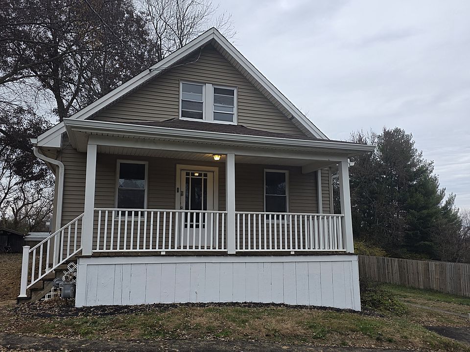 2BR single family home with large yard, front porch, carpet, new appliances, new bathroom.