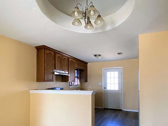 Charming 3 bedroom, 2 bath home with split floor plan and open concept living-dining-kitchen. Custom tile throughout the home. Architectural details in the Living, dining and master bedroom add a touch of class. All bedrooms have large closets for a home in this price range. Utility room off kitchen area. Refrigerator and stove convey. Privacy fenced backyard.