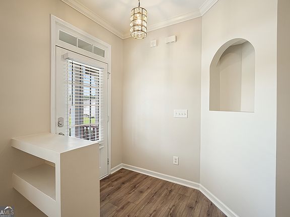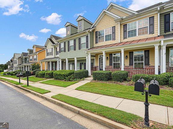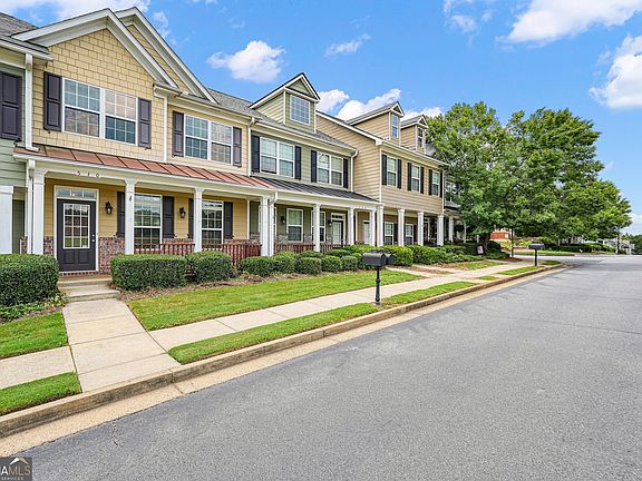 This beautifully renovated 2-story townhouse blends modern sophistication with timeless character in every detail. A welcoming rocking-chair front porch sets the tone, opening to an inviting interior highlighted by graceful arched doorways, detailed crown molding, upgraded designer lighting, and durable LVP flooring that flows seamlessly throughout the main level. At the heart of the home, the gourmet kitchen impresses with a stylish breakfast bar and a full suite of high-end stainless steel appliances that will remain with the property. Designed for effortless entertaining, the kitchen overlooks the spacious family room, creating a warm and open gathering space. The primary suite is a luxurious private retreat, complete with a tray ceiling and a covered balcony ideal for quiet mornings or evening relaxation. The recently renovated spa-inspired bath offers dual quartz vanities with chic gold-accent lighting, oversized 24"x12" ceramic tile flooring, and a frameless glass shower with designer subway tile and an elegant shower wand. A spacious walk-in closet enhances both function and style. Generously sized secondary bedrooms, along with thoughtful enhancements throughout, ensure comfort for family and guests alike. Ideally located just minutes from vibrant Downtown Woodstock, the Outlet Shoppes at Atlanta, and the Town Lake area, this move-in-ready residence also offers the advantage of being within some of the most sought-after school districts in Cherokee County.