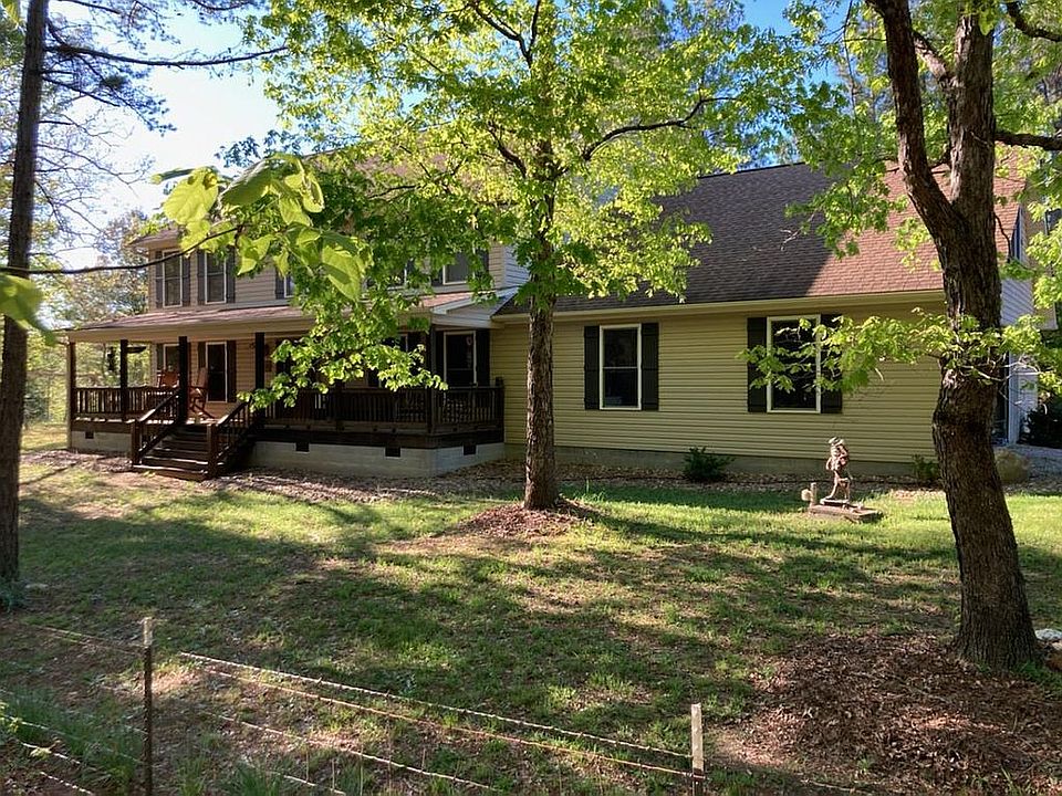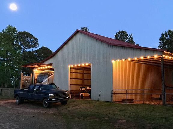 Very secluded home is located to the rear of 98 acres of woods, creeks, pastures and fenced pastures. The driveway leading home is approximately .7 miles. The three car garage has high ceiling and enough room to hold tools, work on vehicle or any other projects. First floor: Large kitchen has more cabinets than you could use, granite counter tops, stone back splashes, pantry and an area to eat, sit or just talk. The formal dining room is just off the kitchen and has beautifully finished barn doors leading to the huge living room. There is also a study, large room for storage that has access to garage, big laundry room with closet and a bathroom on the first floor. Second floor: Enormous master bedroom, with two walk in closets and large master bathroom with shower, his and her sinks/cabinets and big tub for relaxing. In addition to the master bedroom there are three other large rooms all with walk in closets, bonus room and two additional closets for plenty of storage upstairs as well. The home has a well built panic room in the center of the house with walls of steel, plywood and sheet-rock to ensure the safety of your family in case of emergency. And wired for generator back-up to run essential items such as fridge, freezer, etc...during an outage. Also has big front and back porches, central vacuum system, fire-pit, and beautiful views from every where which include the daily visits from wildlife. There is a 62' x 40' metal barn with electric and water. The barn has an enclosed side with 50 amp hook-up for a 40' or longer RV. The barn has more enclosed storage, unfinished loft storage and enough room to store trailers, boats and more. Including stalls to hold animals from chickens to horses. This home would also make a nice lodge for a group of well mannered hunters. Zestimate is not accurate.