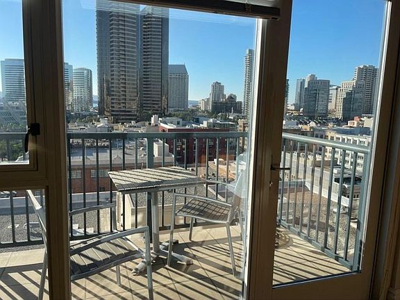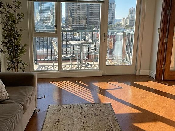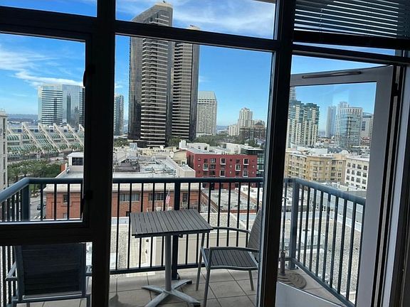 Amazing view condo for rent at Trellis Fifth Avenue in the Gaslamp District!! With no one above you, the 10-foot ceilings create an open, spacious, light, bright feel, met with the look of warm, rich, wood floors. The kitchen features granite countertops, stainless appliances, GAS stove and oven, and ample wood cabinetry. The one bedroom plus a den and 1 bathroom has a relaxing balcony, to enjoy the views within 1 block to Petco Park, 2 blocks to the Convention Center, easy access to the harbor, Rady Shell, Seaport Village, Waterfront Park and a diverse array of shops, restaurants, cultural and historic landmarks. If you prefer to stay at home and get a full body workout on your schedule, head to the 2nd floor 24-Hour gym, or to the terrace courtyard with friends, complete with tables, chairs, barbecue grills, couches, lounging areas and plants for a serene outdoor living ambiance amidst the city. Trellis is a controlled access building with secured underground parking and onsite security 7 nights a week.