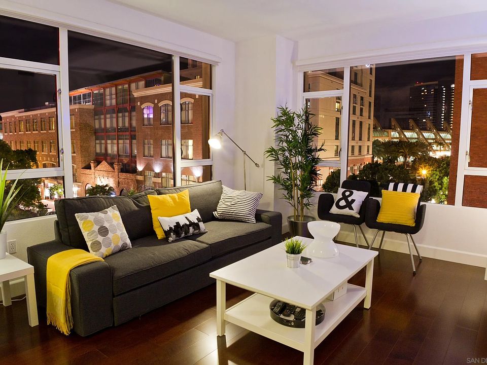 In the heart of it all! Check out this excellently located 2 bedroom and 2 bath Gaslamp unit on the corner of 5th and K! You will be steps from the vibrant nightlife and front row to the exiting downtown events from this spacious corner unit. Complete with 2 parking spots and in unit laundry. The Trellis has great fitness amenities, BBQ terrace and all the good vibes you can handle!