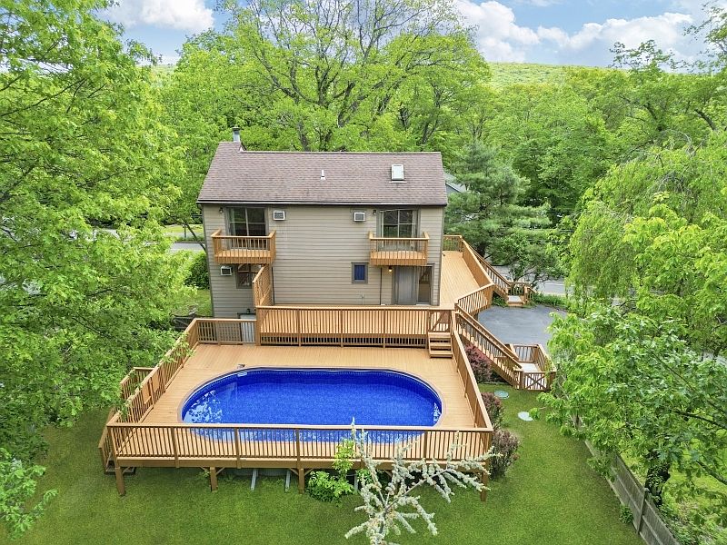 Stunning 3-Bedroom, 3-Bath Custom Colonial Home with Above Ground Pool ! This beautiful 3-bedroom, 3-bath home blends style and comfort. The gourmet eat-in kitchen features granite counters, brand new stainless steel appliances, and recessed lighting, with great space for dining. The spacious living room has high ceilings, a cozy fireplace, a ceiling fan, and a loft-style hallway above. Enjoy a first-floor bedroom and bath, offering privacy and convenience. The second floor boasts a master suite with a full bath and private balcony, plus an additional bedroom and bath. Step outside to the multi-tier deck, perfect for entertaining, alongside the above ground pool. A built-in one-car garage completes the functional layout. Conveniently located near a clubhouse, beach, dining, and state parks. Don't miss this gem schedule a showing today!