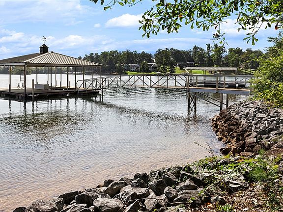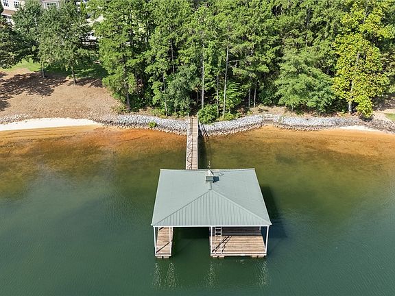 This lot has just over 100 feet of shoreline which has been rip-rapped with granite stones to prevent future erosion. There is also a stone staircase entry to a sandy beach area right in the middle of the waterfront where you will enjoy swimming and launching a kayak or canoe. In addition, there is a full size, covered Kroeger Aluminum dock which is big enough to allow for two slips (subject to Duke permitting). The current configuration is one slip and a large, covered entertainment patio with a dock box for storage. The dock was moved out to deeper water and secured by metal pilings so there are no annoying cables in your swimming area.