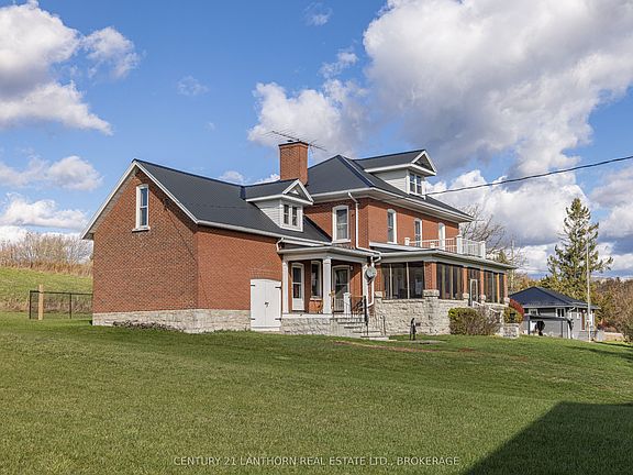 Welcome to this beautifully maintained five-bedroom, one-and-a-half-bathroom brick home, built in 1915 and set on a picturesque two-acre lot surrounded by open fields. This charming property blends the durability of historic construction with thoughtful modern updates. The home features a solid brick exterior, stone foundation, metal roof, and a lovely screened-in front porch-perfect for relaxing and enjoying the countryside views. Inside, you'll find spacious rooms, high ceilings, and stunning original woodwork that highlight the craftsmanship of the early 1900s. The main floor offers a large, open kitchen with a dining area, a cozy family room with a wood stove, and an inviting living room with a gas fireplace. Upstairs, there are five comfortable bedrooms, a four-piece bathroom, and additional storage space-ideal for a growing family or hosting guests. Outdoors, enjoy the private, heated inground pool conveniently located behind the house, surrounded by a well-kept lawn and open views. There's plenty of room for gardening, recreation, or future projects, especially with the two storey 29' by 39' outbuilding. This home showcases the strength and character of early 20th-century design, featuring original hardwood floors, wooden pocket doors, substantial baseboards, and a grand staircase. Conveniently located on the edge of the quaint village of Newburgh, this property offers peaceful rural living just minutes from Napanee and Highway 401.