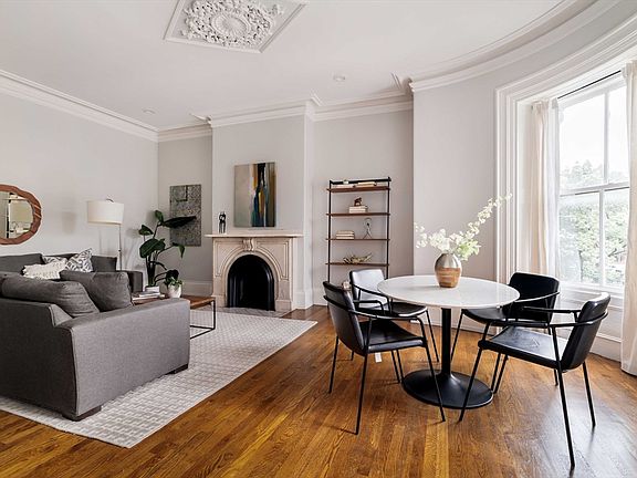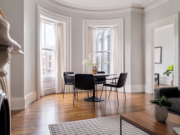 Gorgeous pre-war condo located on historic Chester Park for easy access to the Symphony, Back Bay, & all that the South End has to offer. This light-filled 2-bed, 2-bath home features high ceilings, dramatic crown moldings & ceiling medallions, decorative marble mantelpieces, rounded bow front windows & hardwood floors. Paired with these well maintained original details are well updated bathrooms & an eat-in kitchen featuring stainless steel appliances & plentiful white shaker-style cabinetry that maximizes every inch of storage. A rear door from the kitchen opens to a spacious private-use deck, surrounded by mature trees, for enjoying morning coffee and evening meals with friends. The primary bedroom offers a tremendous amount of space, is adorned with another impressive marble mantelpiece, two closets and a generous ensuite bathroom. Additional amenities include central air & in-unit laundry. This home enjoys close proximity to public transportation, the Boston Medical Campus & more!