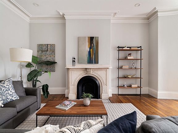 Historic chester parkEat-in kitchenSpacious private-use deckHardwood floorsPrimary bedroomImpressive marble mantelpieceMature trees