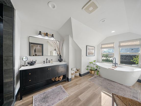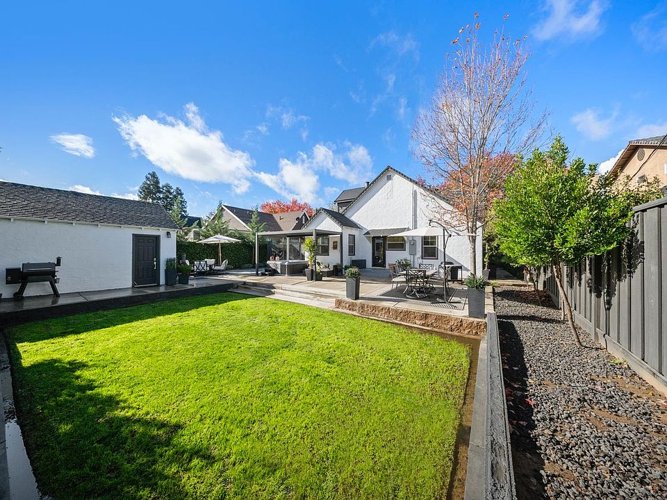 This captivating College Area Tudor home flawlessly marries classic charm with elevated modern luxury, highlighted by a second-story addition designed by architect David Perry. This addition created a luxurious Primary Retreat, featuring a private reading area, a spa-like bathroom with a massive shower and deep soaking tub, and an expansive walk-in closet, with the fourth bedroom cleverly used as an additional closet. The interior boasts high-end updates like Brizzo fixtures, expert tile, durable plank flooring, and a sleek stairwell, complemented by updated HVAC, windows, electrical, and plumbing. The adorable, updated kitchen maintains the home's original character while offering modern functionality and appliances. Outdoors, the re-landscaped property is an oasis with custom lighting, a private fence/wall, an outdoor spa, a pergola, and extensive concrete for entertaining. The detached two-car garage is utilized as a versatile "man cave," delivering a truly sophisticated and turn-key living experience.