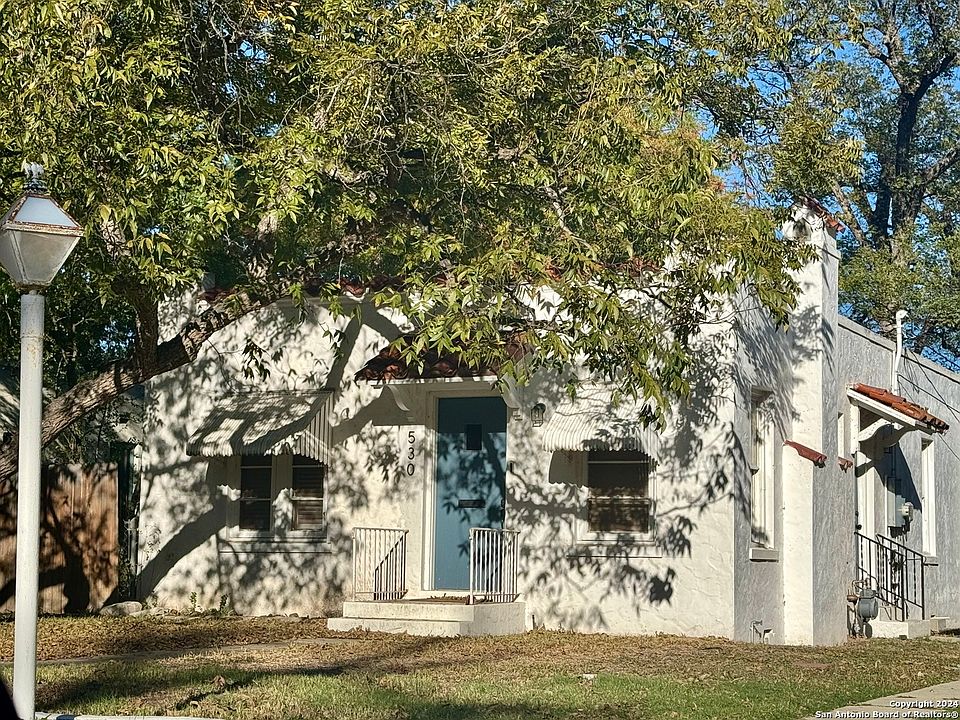 Perched prominently on North Getty street, this historic home sits proudly. With three bedrooms PLUS a bonus office/den/4th bedroom, there's room to spread out. The kitchen is nicely appointed with modern appliances and finishes. The expansive lot size could be a hosts dream! The irrigation system here is a plus. There is a large patio and mature shade trees. Take a walk to the back of the property and you'll find a finished storage building on slab. With the existing electrical, this could make for a great home gym or work shop. For anyone who enjoys Uvalde's historic district, this would be direct access to the most popular walking path in town, a front seat to the parade routes, walks to local shops and more!