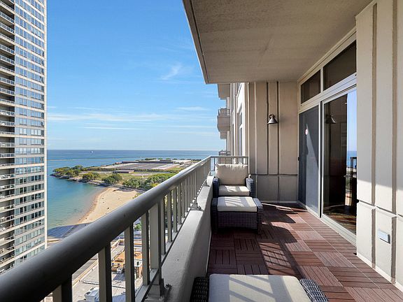 Imagine waking up every morning to the soft, shimmering blue of Lake Michigan stretching endlessly outside your window. The horizon melting into sky as sunlight dances across the water. This "01" unit with a corner balcony is a RARE FIND!! The immaculate 2 bedroom, 2 bath split floor plan condo on iconic Lake Shore Drive isn't just a home, it's an experience. A retreat. A front-row seat to the soul of Chicago. Imagine sitting on the rooftop deck watching the fireworks at Navy Pier or the Air and Water Show! In a full-service luxury building, every detail is cared for - from the 24-hour doorman who greets you by name, to the state-of-the-art fitness center, rooftop deck (gorgeous flowers, pergola, outdoor TV, grills, 3 firepits and plentiful seating) and residents' lounge. Walk out your door and you're steps from Ohio Street Beach, the Lakefront Trail, Navy Pier and Magnificent Mile shopping. Fine dining, world-class culture, and the heartbeat of Chicago are all at your feet - yet inside, you're wrapped in stillness, light, and lake air. The expansive living and dining area offers breathtaking views of the city skyline. Step onto your private corner balcony, giving you 270 degree views of the lake, beach and bustling city. The Brazilian cherry floors exude warmth throughout. Cozy up to the gas log fireplace on chilly winter evenings. Entertain family and friends in the large galley kitchen with sleek granite counters. The primary suite is a sanctuary with walk-in closet, en-suite bathroom and gorgeous built-in bookcases. The second bedroom can be your guest retreat, a serene office or a creative studio. The second full bath is thoughtfully designed, perfect for visitors or everyday indulgence. Ample storage closets throughout. Full height storage locker #2101 on the 5th floor. Attached garage parking with a Tesla Level 2 Charger is $45,000 extra (space #438 on the 4th floor). Welcome home!