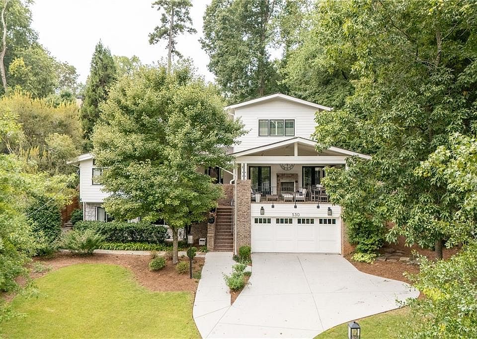 This Treetop Retreat on Oakview is for buyers who want privacy, light, views and walkability, all in one unforgettable home, just 0.3 miles from the heart of Oakhurst Village. Blending modern sophistication with warm, livable design, this Arlene Dean and Eric Rawlins residence offers a rare, elevated setting with tree-filled views and mountain-inspired serenity in one of Decatur’s most coveted neighborhoods. Intentionally elevated above the street, the private drive creates a true sense of arrival. By lifting the home above surrounding activity, it enhances privacy, quiet, and protected sightlines into the treetops, creating a peaceful retreat while remaining moments from village shops, dining, and community life. Inside, dramatic windows flood every level with natural light and lush green views. The main-level primary suite is a calming retreat with a spa-inspired bath featuring a soaking tub, expansive shower and generous closet. A second en suite bedroom on the main level offers flexibility for guests, a home office, or multi-generational living, as does the finished terrace level that offers an optional in-law suite, complete with kitchenette and full bath. Or just enjoy it as a fantastic recreation space with an impressive 900-bottle wine cellar with your closest companions. Multiple living spaces allow everyone to gather or retreat with ease, from the formal dining room that seats a crowd to the inviting den off the kitchen and the front living room that opens to the beloved treetop porch, ideal for morning coffee or sunset cocktails. The bright, updated kitchen combines timeless design and modern functionality with bright white and dramatic blue cabinetry, honed marble countertops and serene backyard views. Outdoor living is an everyday luxury with a covered front porch featuring a raised ceiling and fireplace, a rear deck equipped with an outdoor refrigerator, grill, and sink, and a fenced backyard with stone fire pit surrounded by greenery for privacy. Upstairs, two additional en suite bedrooms and a sun-filled loft provide flexible living. Recent updates, including a new roof, further enhance the ease and confidence of ownership. A rare combination of privacy, flexibility, and location, this one-of-a-kind retreat is crafted for view seekers, privacy lovers and buyers who appreciate elevated living just moments from the energy of Oakhurst Village.