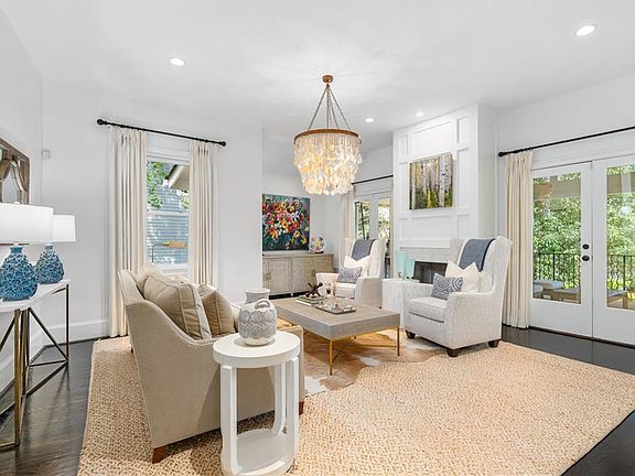 Only 0.3 miles from the heart of Oakhurst Village, this remarkable Arlene Dean/Eric Rawlins home blends modern sophistication with warm, livable spaces. From the moment you step into the welcoming foyer, dramatic windows flood the home with natural light, setting the tone for the elegant design throughout. The main level features a coveted primary suite with a spa-inspired bathroom, complete with soaking tub, expansive shower, and a dream-worthy closet. A second en suite bedroom on the main adds flexibility for guests, family, or a home office. Multiple living spaces make this home perfect for gathering, whether in the formal dining room that easily seats a crowd, the inviting den off the kitchen, or the elegant front living room with access to the front "treetop" porch. The bright, updated kitchen, showcasing a white-and-sublime blue cabinetry combination with honed marble countertops, overlooks lush backyard views and connects seamlessly to the outdoor living areas. The outdoor spaces are true showstoppers: Covered front porch with dramatic raised ceiling and fireplace that is ideal for dining al fresco and enjoying a treehouse-like perch Back deck with a full outdoor kitchen Private backyard with a stone fire pit, surrounded by greenery for total seclusion Upstairs, find two additional en suite bedrooms plus a light-filled loft, perfect for homework, reading, or play, with serene three-sided green views. The finished terrace level expands the home's versatility with polished stained-concrete floors, a kitchenette, full bathroom, and recreation room, perfect for an in-law suite or weekend entertaining. Don't miss the impressive 900-bottle wine cellar. This home offers a thoughtful blend of elegance and functionality, with multiple community spaces across all levels and finishes that elevate everyday living. A rare Oakhurst opportunity, just steps from the village, yet completely private. Come see what makes every nook and cranny so special.