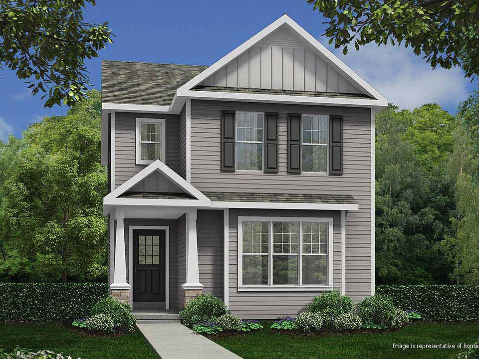 Image is representative of home. Amenities: Traditional style 2-story home, with 3 bedrooms and 2 1/2 bathrooms, Open Concept floor plan, Pebblestone Clay colored Mastic siding, Hallman Lindsay(R) "Hearthstone" paint with Orange Peel Texture, Custom Auburn Ridge(R) cabinetry, doors and trim throughout the home, Heritage style kitchen cabinetry includes hardware, crown moulding and soft close drawers/doors, Kohler(R) plumbing fixtures in the kitchen and bathrooms, Kitchen features large island with a breakfast bar, Mannington Restoration Laminate flooring throughout kitchen, dinette, foyer, and great room, Owner's suite features tray ceiling, walk-in closet, plus owner's bath, Convenient main floor laundry, 14'x10' Patio with convenient access from the dining area, Basement 3/4 bath rough-in