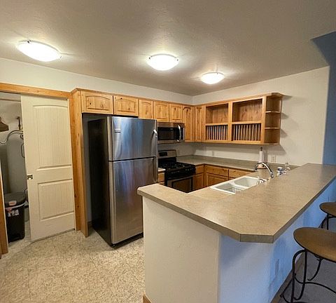 Second floor unit with high ceiling in living room. Master bedroom has an on suite bathroom. Guest bedroom and bath are off of hallway. There is a door between the two bedrooms. Windows and deck get morning sun. Freshly painted and cleaned. Complex has a park with playground, grass, and a trail. Walking and biking distance to downtown Ridgway restaurants and businesses. Pets negotiable.