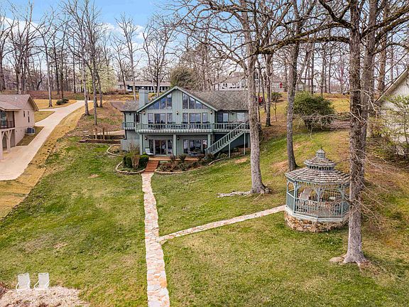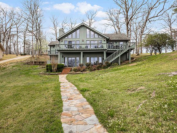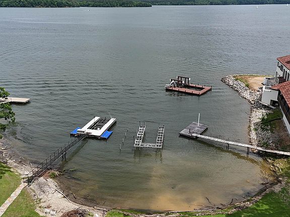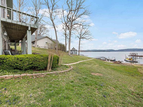 Fabulous waterfront home with walkway to the lake and private dock. Large flat lot in River Cliff subdivision with big views of the lake. This home features three bedrooms and baths. Open vaulted great room and dining room with big views of the lake. Masonry wood burning fireplace. Large primary bedroom with elegant bath. Large deck to enjoy the sunrises and moon views over the lake. Huge bonus room with covered patio. Home is furnished and includes two covered slips in the marina.
