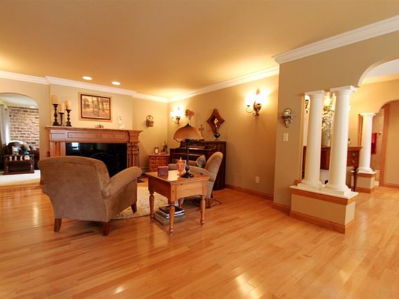 Simply Sensational! This remarkable offering is truly pristine from top to bottom. Situated on a large corner lot, this home sparkles. The curb appeal is outstanding with a beautiful covered porch that leads the way into the grand foyer. The foyer is stunning with detailed tile work, amazing hardwood floors, stately pillars and a curved ceiling. The hardwood floors flow seamlessly into the formal dining and living rooms that offer an inviting conversational space with an impressive fireplace to warm the atmosphere. The formal spaces lead into the main floor family room and gourmet kitchen. This stunning space is truly the heart of the home. The high end kitchen is fit for any chef, with its double ovens, granite counter tops, spacious center island and tons of beautiful cabinetry. The cozy yet expansive family room includes a wall of stone, another fireplace and a built-in entertainment center. The main floor includes four bedrooms, one of which is the luxurious master suite that is a private oasis. The master bedroom is vaulted and offers a wall of windows with access to the serene rear yard. The master bathroom is fit for a king with heated floors and a custom tiled shower. Other main floor features include one full bathroom, two half baths, main floor laundry, and more. There is room to roam in the finished lower level that features a family room with fireplace, an attached rec room, another full bathroom and storage galore! The exterior features of this home are park like. Situated on nearly an acre lot, the rear yard is accented by a wrap-around - multi-tiered deck that overlooks mature trees, meticulous landscaping and provides an escape from everyday life. This property features a three car attached garage, a three car detached garage complete with heating/cooling and a large storage shed. This one truly is an escape from the ordinary! You have to experience it for yourself! Don't miss it!