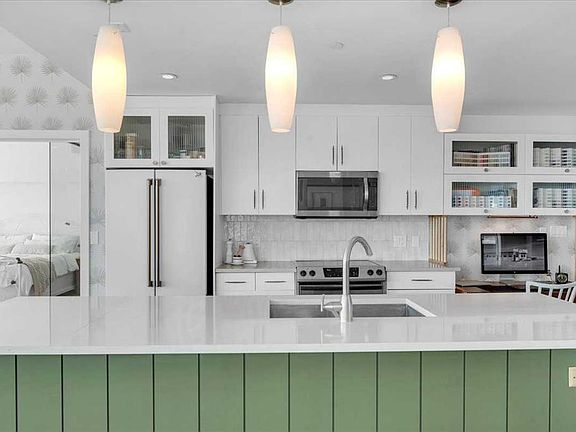 Designer Corner Unit with Panoramic City Views in the Heart of the Beltline. Step into modern luxury with this 17th-floor corner residence in the sought-after Castello building. Boasting floor-to-ceiling windows, 9-foot ceilings, and a massive wrap-around balcony, this home is designed for those who value natural light, stylish finishes, and unbeatable views spanning east, south, and west across Calgary’s skyline. Not to mention your own private viewing of the Stampede fireworks! The open-concept living space has been thoughtfully updated with designer touches, including a refinished feature wall with elegant wallpaper and a beautifully transformed kitchen. Here, you’ll find freshly painted cabinetry with new hardware, a striking designer backsplash, refreshed island with shiplap accents, and upgraded appliances, including a GE Café counter-depth refrigerator. A cleverly designed desk area in the kitchen doubles as a discreet, water-resistant spot for dog or cat dishes, keeping your furry friend’s essentials tucked neatly out of the way. Your primary retreat is a true sanctuary, featuring a full length window with automatic blinds, a spacious walk-in closet with built-ins, and a spa-inspired ensuite complete with double sinks, a private water closet, and a luxurious 3-sided glass shower with rain head. A second bedroom and full bathroom offer flexibility for guests, a home office, or both. Additional highlights include Miele in-suite laundry, central A/C, titled underground parking (conveniently near the elevator), and a titled storage locker. The Castello offers premier amenities: fitness centre, concierge service, guest suite, visitor parking, car wash bay, and bike rack area. Pets are welcome (with restrictions). Situated in the vibrant Beltline district, this home puts you just steps from Calgary’s best: the trendy restaurants and boutiques of 17th Avenue and Mission, the energy of 1st Street and 12th Avenue, the cultural attractions of Stampede Park, and the business core of downtown, all within walking distance. If you’ve been searching for a stylish downtown home that blends modern comfort with unbeatable convenience, this is the one. Schedule your private showing today and experience why Castello remains one of Calgary’s most desirable addresses.