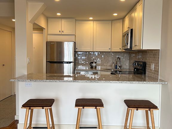 Upgrades include a new bathroom, new kitchen cabinetry with a granite countertop and large bar, brand-new washer and dryer units(very quiet) and two brand-new Friedrich PTAC systems (serving both the living room and bedroom) for quiet, energy-efficient heating and cooling.