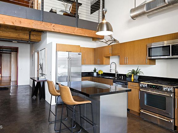 This one-of-a-kind industrial loft is located in one of the most unique buildings in DTLA's Arts District. The Barker Block building is a combination of luxury living and practicality, offering the ideal work and live space. Unit 131 is a rare, two-story level condo with an ideal floor-plan and is centrally located in the building, providing easy access on the first floor. This unit features high, two-story ceilings and floor to ceiling windows which provide plenty of natural sunlight. The first floor features polished, concrete floors with a large living room area across the kitchen with stainless steel appliances and center island. The second floor has a separate door for direct access and is the perfect primary suite level featuring hardwood floors and a full bath. Building amenities include a stunning, rooftop with panoramic views, a pool, spa and barbecue areas for entertaining. There is also a fitness center as well as ground floor, courtyard lounge with fire pit and lounging areas. The building offers 24/7 security, as well as gated parking spots. Unit 131 has two assigned parking spots, as well as in unit laundry. Barker Block is conveniently located just steps away from Urth Caffe and the Arts District Park. Conveniently located near trendy restaurants such as Girl and The Goat, SoHo House, Bavel and many other hot spots. The location is central to all freeways and near USC, SCI-Arc, Honey, Sony, Apple TV, Warner Bros, Spotify and more.