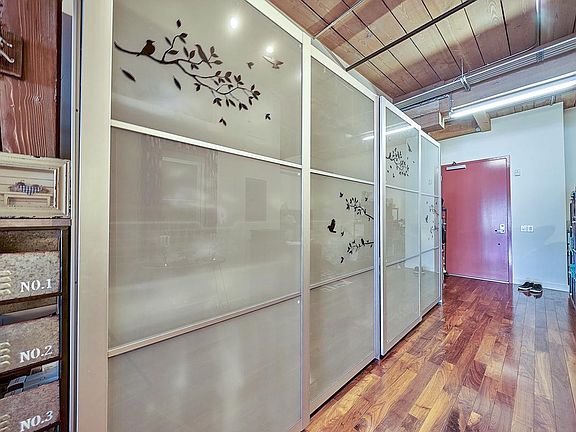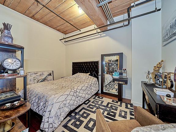 In Art District Barker Block., This condo is live/work permitted with open high ceiling floor. This unit is facing east courtyard which gives you open view. Hardwood floor and wooden beams gives you extra chic look. Spacious glass door closet provided so you can be organize. New dryer and washer are in unit inside the spacious bathroom. The rooftop has been remodeled and upgraded which gives the extra relief when you need to rest. A evening with fireplace and sunset is another joy this condo offers with spectacular downtown view. Close to many hip restaurants like Manuela, Factory kitchen, Brera, Bavel and more. 24 hour security with covered parking and Wife in common area. Enjoy your view while you are in the gym.