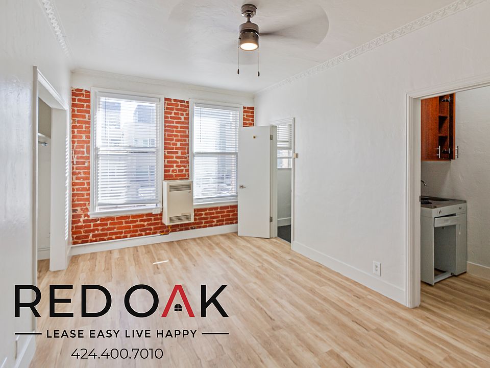 Lovely Bachelor Studio with Hardwood Style Floors, Ample Closet Space, Exposed Red Brick, Stylish Celing Fan, and On-Site Laundry ~ In Prime Koreatown! Home Highlights: Naturally Lit: Enjoy large windows and lots of natural sunlight, accentuating the hardwood-style flooring and exposed red brick walls. Enhanced Privacy: Blinds on the windows let you control the light and offer additional privacy. In-Unit Storage: Stay organized with two convenient closets. Temperature Control: An efficient gas furnace and breezy ceiling fan will ensure that your home is always comfortable. Cozy Kitchenette: Featuring hardwood cabinets, a stainless steel sink, and an electric cooktop. Elegant Bathroom: Boasting modern fixtures, pedestal sink, and walk-in shower. On-Site Laundry: Say goodbye to laundromat hassles with the convenience of on-site laundry facilities. Pet-Friendly Policy: This community warmly welcomes your pets with a minimal deposit and monthly pet rent. Convenient Location: A perfect blend of urban living, nightlife, and convenience. Centrally located with rich history and a welcoming community. This one won't be on the market very long! Available for an immediate move-in. LEASE TERMS: 1 Year Lease Pictures and descriptions are of EXACT unit Square Footage is approximate. Street Parking Only. Showings may not be 1-on-1. All information must be validated on Red Oaks Website since 3rd party websites can feed incorrect information.