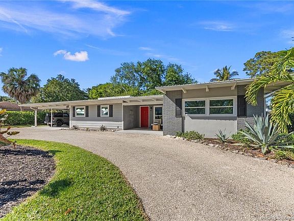 This one-of-a-kind mid-century modern pool home has been beautifully renovated while maintaining the architectural integrity of its era. You will fall in love the moment you step foot inside and catch a glimpse of the original pine ceilings & beams, and gorgeous views of the backyard pool. Updated features include 2019 roof, wood look porcelain tile, tongue and groove cedar ceiling and crown molding in the bedrooms, new doors, impact windows, fenced yard, in-ground pool, storage shed, remodeled kitchen with SS appliances, and newer washer/dryer. The main home is 2 BR/2 baths, with a possible 3rd BR (no closet)- great for an office or bedroom, w/ a door to the carport and access to the laundry room and cabana bath. Off of the porch there is a studio apartment with kitchenette, bathroom, walk-in closet, and separate entrance door in the carport. Located just minutes to downtown Stuart & just a short stroll to the end of the street you can watch the sunset over the St Lucie River.