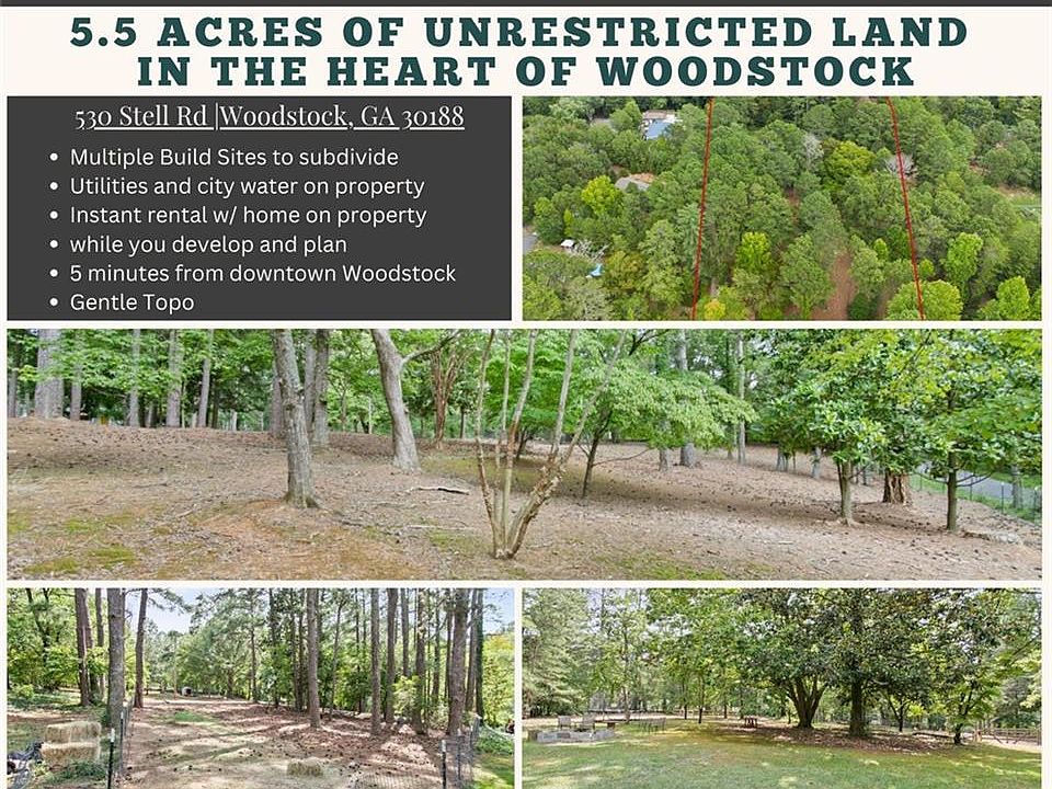 Welcome to your serene escape in the heart of Woodstock, GA, where country charm meets city convenience. This 3-bedroom, 1-bathroom home sits on a sprawling 5.5-acre lot, offering the perfect blend of tranquility and accessibility. You'll feel like your miles away from the hustle and bustle, yet you're just a short drive from Roswell, Marietta, and Highway 92, with downtown Woodstock less than a 10 minute drive away. Whether you're an investor looking for a prime development opportunity or a homeowner searching for a peaceful retreat with endless possibilities, this property is a rare find in a highly sought-after location. Imagine having chickens and goats right in your backyard— property comes complete with chicken coop and grazing pasture. This is truly country living in the heart of Woodstock. Don’t miss this unique chance to create your perfect escape while staying connected to all the amenities you need.