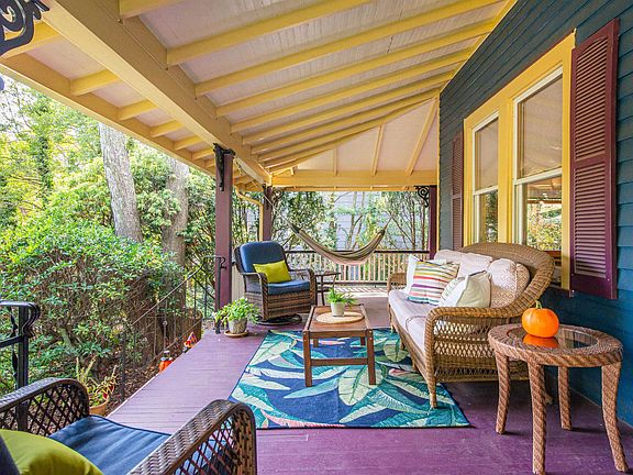 Head up the landscaped lawn to the enchanting private wraparound porch and enter through the front door into the main foyer with hardwood floors and 2 closets. From the foyer, a set of French doors open to the formal dining room with hardwood floors, crown molding and 2 built-in hutches.