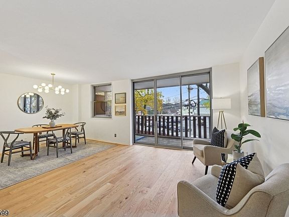 Sought after Bellaire House is conveniently located in Upper Montclair close to all shopping, restaurants, cafes, and a supermarket right next door. Two-bedroom, two-bath condo has a sunny open layout with sliders to private deck and newly-refinished floors. All-white kitchen with granite countertops & stainless steel appliances flows seamlessly to the spacious living and dining areas. Primary suite includes a walk-in closet and ensuite bath has tiled shower. The second bedroom is light-filled and spacious, and a second full bathroom, accessed from hallway, has a tub shower. Amenities include 24/7 doorperson service, on-site supervisor, laundry on each floor plus laundry room and storage in basement. Outside you'll find the building's beautiful pool, a patio with BBQ area and community garden. Maintenance fees include heat, hot water, gas, electric, building services and pool access. Pet-friendly (one cat or dog under 30 lbs allowed) and dog-run on site. All this in full-service premier building just blocks from Upper Montclair train station, Anderson Park and Upper Montclair Village. Fabulous Presby Iris Gardens, town tennis/pickle ball courts, sledding hill and more are also close by.