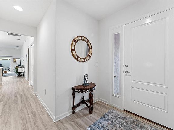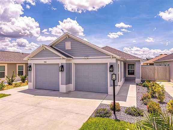 Welcome to 530 Van Deen Place just minutes from the new destination of Eastport, located in the heart of The Villages, is buzzing with activity as construction projects across the area bring an exciting vision to life. Eastport is set to become a destination that offers something for everyone. Discover effortless luxury and modern comfort in this newly built courtyard-style villa, nestled in a peaceful setting within the vibrant 55+ community of The Villages. Step inside to an inviting open floor plan layout boasting soaring ceilings, luxury vinyl flooring throughout, and a chef-inspired kitchen featuring sleek quartz countertops and elegant finishes. The spacious courtyard and professional landscaping create a private outdoor retreat for morning coffee or evening gatherings. Your two-car garage offers stylish utility and extra storage. Living here means enjoying world-class amenities: gated access, fitness center, dog park, golf and tennis courts, pools, many activities to join and a range of outdoor paths and green spaces, all within a short drive to restaurants, healthcare, and shopping.
