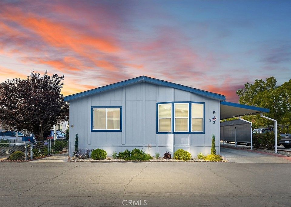 Step into a world of comfort and charm with this beautifully upgraded 3-bedroom, 2-bath manufactured home that perfectly blends modern convenience with a warm, welcoming atmosphere. As you enter, you’ll be greeted by the elegance of upgraded flooring and fresh paint that sets a serene backdrop for your new life. The open-concept kitchen, with a walk-in pantry, flows seamlessly into the spacious living room, making it an ideal space for entertaining or cozy family gatherings. A separate family room offers additional space for relaxation or play, ensuring everyone has their own retreat. The pride of ownership shines through in every detail, from the clean and bright bathrooms to the lush, landscaped yard, which boasts flourishing vegetable and herb gardens, accompanied by a worry-free automatic drip system for easy yard maintenance. Perfect for the green thumb in your family. Your furry friends will love the fenced yard that provides a safe haven for outdoor play, while the upgraded shaded porch invites you to unwind with a good book or savor your morning coffee in the refreshing breeze. There is no need to stress about street parking, as you will find an oversized carport, able to fit up to 3 cars. Nestled within a gated community, you’ll enjoy access to a clubhouse and pool, offering a lifestyle of leisure and connection at an affordable price. This home is not just a residence; it’s a sanctuary waiting for you to create lasting memories. Don’t miss the chance to make it yours!