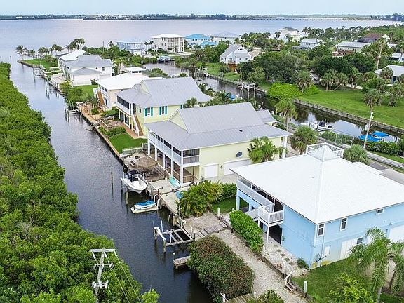 2-Story 3Br/2Ba waterfront home on protected canal. No HOA! Fisherman's delight! Bring the boat & Sea-Doo home to your private dock w/boat lift & Intracoastal access. Upstairs living area. Kitchen, Dining, MSTR, & Living Rm open to covered porch, all with water views. 1st flr Lrg office w/closet. Huge Game room. Work room w H2O & Electric can hold all your fishing gear. Rm siz aprx