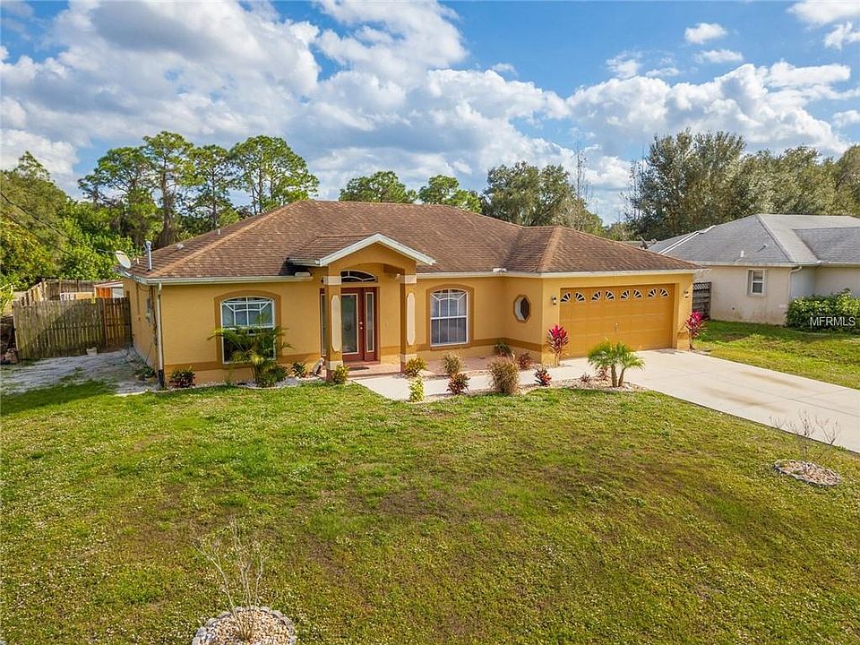 Welcome to Asleir Rd. This quiet community is in the perfect location close to I75, the beaches and everything to do in North Port. A tremendous value, this home will not last on the market for very long. With an "open concept', you'll notice the high ceilings and beautiful ceramic tile with a Spanish med flair throughout. Granite countertops and high quality craftsman wood cabinets make the kitchen not only useful, but pleasant. The ceramic tile flows right into the master bedroom with an adjoining master bath that is nicely appointed with a high quality wood vanity. There are ceiling fans in every room of the home and the guest bedrooms have quality wood floors. No carpet in this home! Walking past the kitchen and through the dinette, you'll enter a large dining room addition with ceramic tile. There is plenty of room for a pool in this large fenced in back yard. This is the perfect family home and is priced to sell as a starter home, an upgrade from a smaller home or a profitable rental property. The 2 car garage is even air conditioned and there is plenty of room for parking in the driveway. Please do yourself a favor and put this home on your list of favorites. You won't find a better value in North Port!