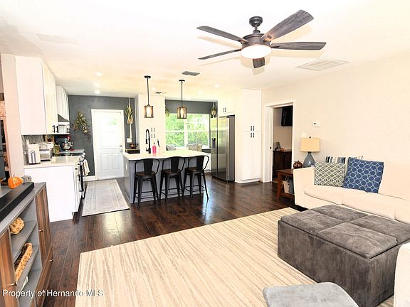 Active Under Contract - Accepting Back Up Offers. AFFORDABLE and ADORABLE!! This great value priced home has been recently updated with a full kitchen renovation and updated with new cabinetry, new solid surface countertops, backsplash tile, and energy efficient LED recessed lighting. A window box seating area was added to the kitchen offering a cozy corner to sit and enjoy your morning coffee while watching the birds and wildlife in the private backyard. All kitchen plumbing fixtures were updated plus a stainless steel farm sink and stainless gourmet style range hood. The island kitchen work area is great for entertaining or for those who love to cook. Interior features include pocket doors and a barn style door to the master bath. Split floor plan offers privacy for the master suite. Open floor plan allows unimpeded interaction between the living room and the kitchen area so you can entertain friends and family while preparing meals. The windows have been updated with double pane windows and seller reports low energy bills between $100-$150 a month. Enjoy the great Florida weather while utilizing the screen enclosed front porch area. NO HOA FEES OR RESTRICTIVE RULES so you can store your boats, ATV's, RV's or other toys on the property. Conveniently located just 10 minutes from I-75 and 51 miles from Orlando area attractions. A short 10 minute drive to the 46 mile 'Rails to Trails' biking/hiking trail. Just 5 minutes away from a local 41 acre county park with ball fields, basketball court, picnic pavilion, volleyball, walking trail, and playground. Enjoy 80,000+ acres of state recreation lands offering boating, canoeing, camping, hunting, hiking, and fishing all within 15 minutes drive.