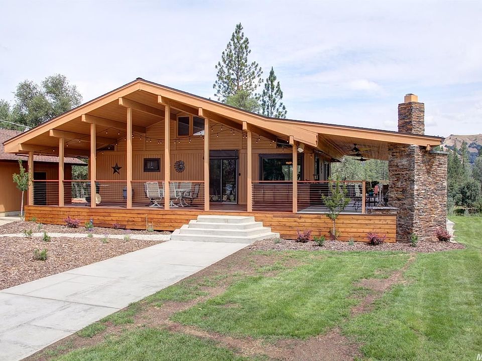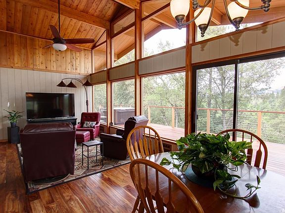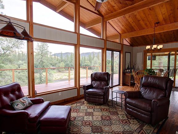 RiverView Ranch! 11.6 acre parcel w/spectacular river views. Relax, entertain, or watch TV on the newly installed, Brazilian hardwood deck. Fully re-modeled kitchen w/custom cabinets, marble counters, Wolf range, stainless fridge, & swing out windows. Take a picnic to the sandy beach & watch the rafters float by. Minors ditch water available. Irrigated garden w/deer fencing.