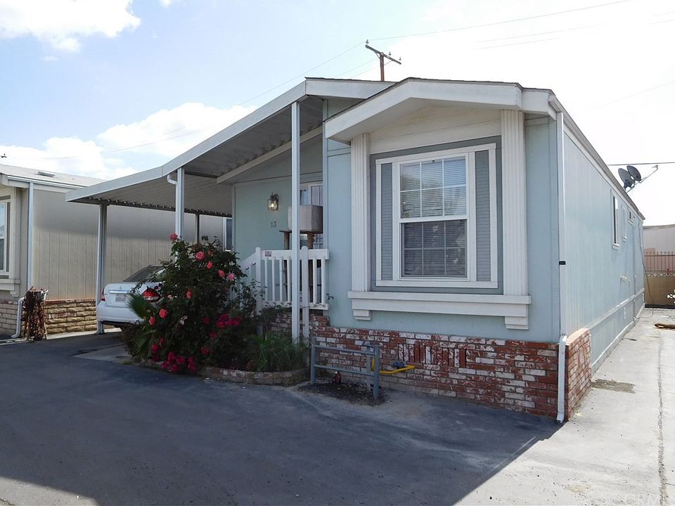 Charming manufactured home built in 2006 located in a very clean 55+ community located near major freeways in a tranquil area of Lynwood. The exterior has been well maintained there is a long drive way that can accommodate 3 parking spots and the a few guest spots located just a feet away from the home. As you enter the home you are welcomed by a good sized living room that adjoins to the dining space and kitchen. The kitchen has great layout and plenty of storage space to offer. There is a separate laundry room that offers space for side by side washer and dryer and storage space. The guest bedroom is a great size with lots of closet space. The master bedroom is located in the rear great for privacy and has its own bath that is huge with a double vanity.