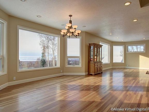 Perfectly perched on a hill with unobstructed views of city lights, mountains, inlet, volcanoes, and much more. Sellers spared no expense on this home. Some highlights include: granite counters, Brazilian Cherry floors, radiant heat, vinyl windows, huge pantry, potential MIL apartment and each bedroom has its own zone/thermostat. If you are looking for a lower hillside home with perfect views,