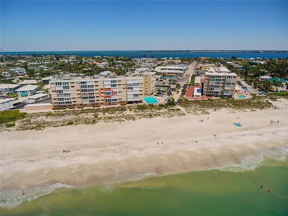 BEACH FRONT Island Living. This Turn Key Furnished 2 Bedroom, 2 Bath, 1,169 Square Foot Martinique NORTH Condo is located on the Pristine Powdery Beaches of Anna Maria Island. Escape to a Tropical Paradise when your lifestyle permits OR Rent this Beautiful Unit to Assist in Making your Investment Cash Flow Affordable. Spectacular Water Views from Living, Dining Room, Kitchen and Master Bedroom. This recently redecorated condo brings in an enormous amount of natural light with the large waterfront windows. The Building has 2 elevators, well decorated Community Room with Kitchen outside the pool area, Heated Pool, Insulated Garage number 25, additional secure ground floor storage and the maintenance fees are $1,507 per quarter. The Washer and Dryer is located DIRECTLY across from the Condo's Front Door. This condo may be rented 6 times per year and has many former renters that would love to return. Direct beach access will be completed this summer. Please view the drone video and 3D Walk through - Walk Through the entire condo with your arrow keys or mouse. Ask your agent to provide the rental analysis that the listing agent has attached for agent use. Don't let Paradise slip away!!!!