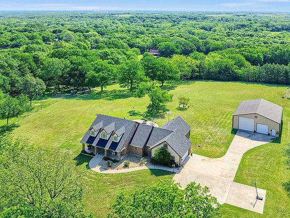 Description: Welcome to this stunning home nestled on nearly 5 acres of beautifully manicured lawn, surrounded by mature, pecan producing trees. Ideally located just minutes from Highway 75 and Lake Texoma, this property offers the perfect blend of convenience and tranquility. Inside, you'll find an open floor plan that seamlessly connects the kitchen, living room, dining area and cozy breakfast nook- ideal for entertaining or everyday living. Large windows flood the space with natural light and offer breathtaking views of the expansive patio and serene landscape, perfect for enjoying peaceful evening outdoors. The spacious master suite features an oversized bathroom with a separate shower and tub, as well as a generous walk-in closet. On the opposite side of the home, two additional large bedrooms share a full bath, providing comfort and privacy for family or guests. Don't miss your chance to view this private oasis with room to raom and the charm of country living. Need a place to store your motorhome, boat, or looking for the ultimate workshop? For the plant enthusiasts, there's even a dedicated greenhouse to keep your plants thriving year round, including through the winter months. This property has it all! A massive 50x60 shop features two front overhead doors and a rear overhead door for easy access to the back of the property-perfect for large vehicles, equipment or hobby space. This is definatly a one of a kind set up. Make your appointment today.