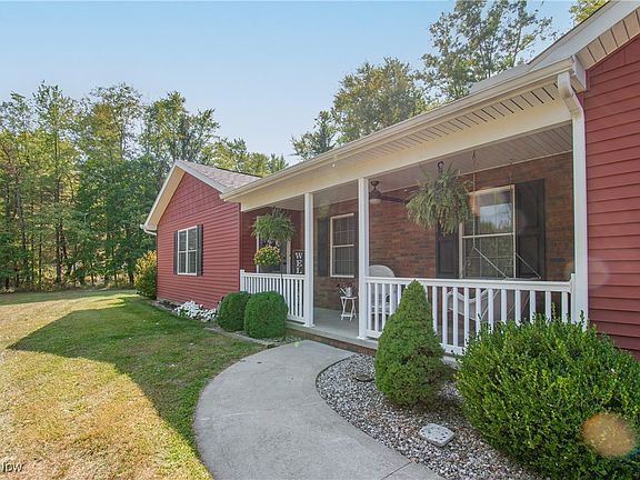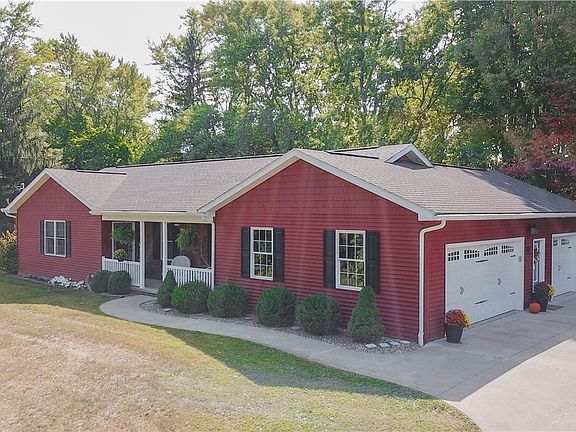 Welcome to this beautifully maintained 3-bedroom, 3-bath ranch home, built in 2015 and nestled on 2.4 private acres. With rich woodwork and an open-concept floor plan, this home combines modern comfort with serene country living while still being conveniently close to shopping. The heart of the home is the stylishly updated kitchen, featuring white cabinetry, Corian countertops, and a spacious layout perfect for entertaining. Upgraded luxury vinyl plank (LVP) and laminate flooring flow throughout the home, adding warmth and durability. The primary suite offers a private retreat with a full ensuite bathroom, while two additional bedrooms and another full bath provide ample space for family or guests. Enjoy the convenience of a first-floor laundry room and a spacious 3-car garage equipped with water access and automatic openers. The partially finished basement, completed in 2020, adds valuable living space, including a large flex room ideal for a 4th bedroom, office, or hobby space, as well as a third full bathroom and cozy living area. Outdoor living is just as inviting, whether you're relaxing on the covered front porch or enjoying the peaceful backyard from your composite deck. Garden enthusiasts will appreciate the mature blackberry bushes and raised garden beds, and there is even dedicated space for RV storage. This one-of-a-kind home blends privacy, practicality, and charm. Don't miss your chance to make it yours!