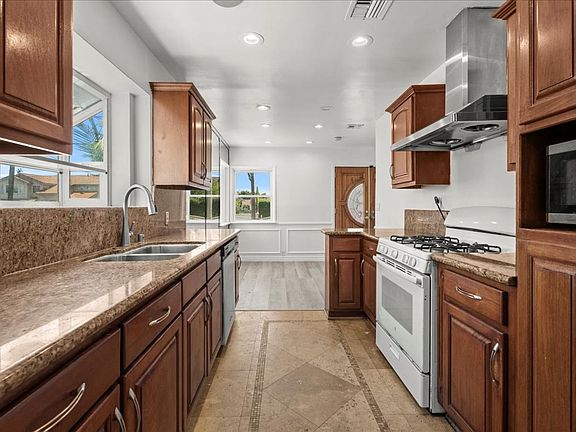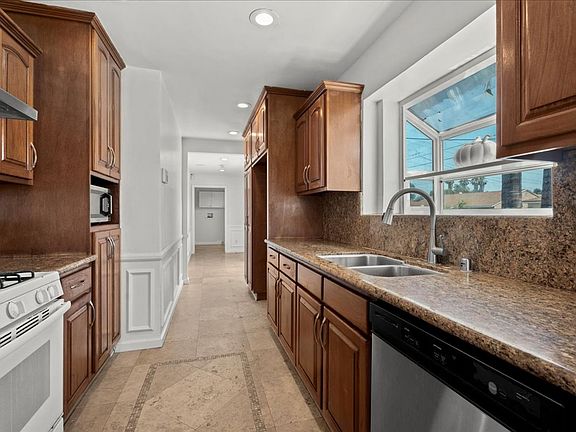 Charming single-story home offering three spacious bedrooms and two updated bathrooms, including a beautiful primary suite with a dual vanity, soaking tub, and separate glass shower. The modern kitchen features granite countertops, rich cabinetry, and stainless steel appliances. New plank-style flooring, recessed lighting, and fresh paint give the interiors a clean, contemporary feel. Enjoy the bright living and dining areas with ample natural light from large windows. The backyard is perfect for entertaining with a covered patio, built-in outdoor kitchen, and gated privacy. Additional highlights include a dedicated laundry room and off-street parking. Well-maintained throughout, this property blends classic details with modern updates for comfortable living. Schedule your tour today!