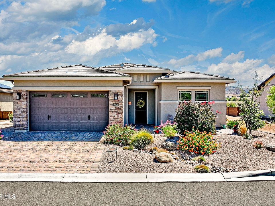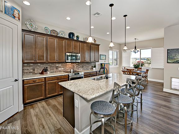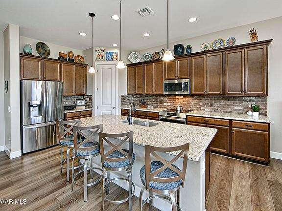 ✨ Nothing to do but move right into this pristine home! Enjoy luxury vinyl flooring throughout and take in exceptional views of Mingus Mountain, the San Francisco Peaks, and the Granite Dells. Natural light fills the home, enhanced by solar tubes, while OWNED solar keeps energy costs low. The spacious 3-car tandem garage is already wired for level-2 EV charging.The kitchen offers an induction cooktop (with a gas stub available), a convection oven, and plenty of space to create and gather.Step outside to your low-maintenance backyard oasis with a paver patio, artificial turf, and raised planter boxes--perfect for gardening or entertaining. Behind the home lies 20 acres of serene, community-owned open space, giving you both privacy and beautiful surroundings.As part of the community, you'll also enjoy access to two dog parks, pickleball courts, and a barbecue area--a wonderful lifestyle right at your doorstep.