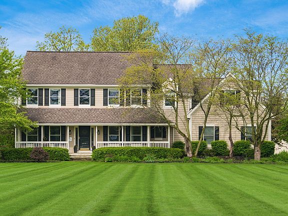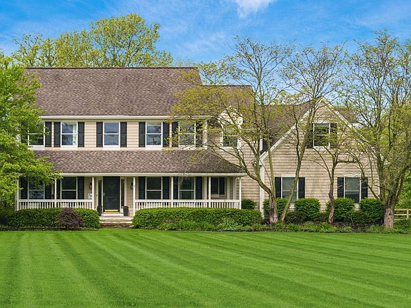 Situated on 5.75 acres, this traditional 5-bedroom, 3-bathroom home offers serene living with convenient access to shopping, restaurants, and parks. The welcoming foyer showcases beautiful hardwood floors leading throughout the main level. The first floor features a well-appointed kitchen with stainless steel appliances, eat-in area, family room, living room, den, office, mudroom, laundry, and full bathroom. The upper level hosts 4 bedrooms, a recreation room, full bathroom, and an impressive primary suite featuring a walk-in closet, dual vanities, modern shower, and soaking garden tub. Outdoor amenities include a spacious deck, fenced backyard, 3-stall horse stable, chicken coop with run, enclosed pasture, and natural acreage backing to a stream. This residence offers an ideal blend of space and accessibility.