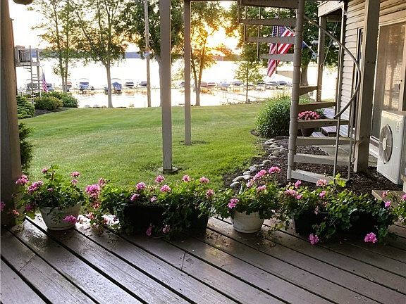 Welcome to your dream home in the peaceful Bay Berry Landing community! This charming 1st flr condo offers comfort & style, making it perfect for a relaxed liefstyle. W/2 bedrooms & 1.5 bathrooms spread over 1062sqft, it features a cozy wood-burning fireplace in the living room. The condo is 1 of 6 first floor units that are accessible from either of 2 decks via glass doors, offering stunning lake views. This unit stands out w/ its dedicated laundry room, accommodating a full size washer & dryer, along w/additional storage space. Both bedrooms boast spacious closets, w/one measuring 6x6ft & the other 8x2ft, including shelves at one end. An 11x4 storage closet located on the back wall of the living room/dining space houses the electrical panel & a 40 gallon hot water tank, providing ample room for more storage. Notably, there are no steps or stairs inside the unit, ensuring easy mobility. The living room's sliding doors, replaced with in the last 5 yrs, enhance the ground level lake views while providing better insulation. The original flooring has been upgraded to waterproof high grade vinyl planking in both bedrooms, the back hallway & the kitchen. A stainless steel refrigerator was purchased 5 years ago,& both bathrooms have upgraded vanities, faucets, & lighting, along w/extra storage & shelving. The kitchen faucet was replaced in 2024, and all water shut off valves at every sink & toilet, including the washing machine in the laundry room, have been updated. Modern louvered bi-fold wooden doors have replaced all closet doors, adding a contemporary touch. The heater in the living room were replaced 4yrs ago. The personal deck beside the living space was renovated & improved by the association in 2024, including leveling, post replacement, & painting. The common deck in front of the unit was repainted in 2023, giving it a fresh look. W/thoughtful upgrades and a prime location this condo is a rare find. Don't miss your chance to make it your home! * Condo is being sold partially furnished.