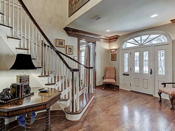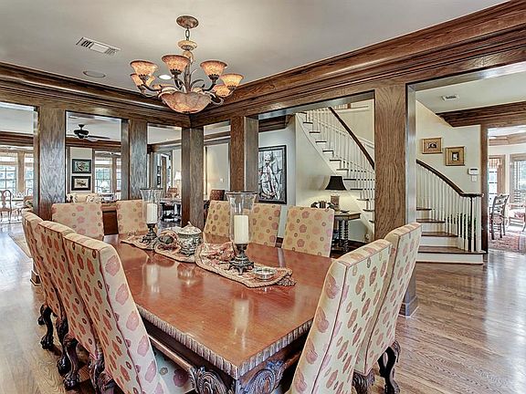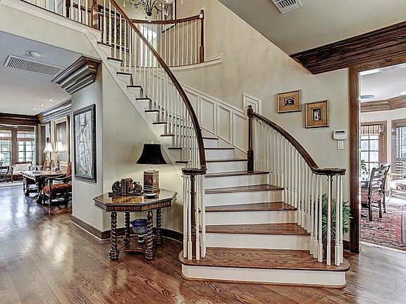 Stately two-story home with circular drive plus gated driveway. Foyer with sweeping staircase. Oak hardwoods throughout the 1st floor. Formal living room with fireplace and built-ins. Grand formal dining room with custom alabaster chandelier. Fabulous chefâs kitchen, Thermador double ovens, six burner gas stovetop, warming drawer and KitchenAid refrigerator/freezer. EuroCave wine refrigerator holds 400 bottles. Enclosed sun room with walls of glass overlooks beautifully landscaped backyard. Spacious and warm family room with custom Brian Stringer entertainment center. Double French doors lead to patio - perfect for entertaining. Master suite with fireplace and vaulted ceiling. Private sitting room with built-in desks. Master bath with beamed circular ceiling, shaving height counters, separate dressing table and double entry shower. Multiple access doors to back patio with built-in grill. Home was totally rebuilt in 2003 with new additions and heated pool.
