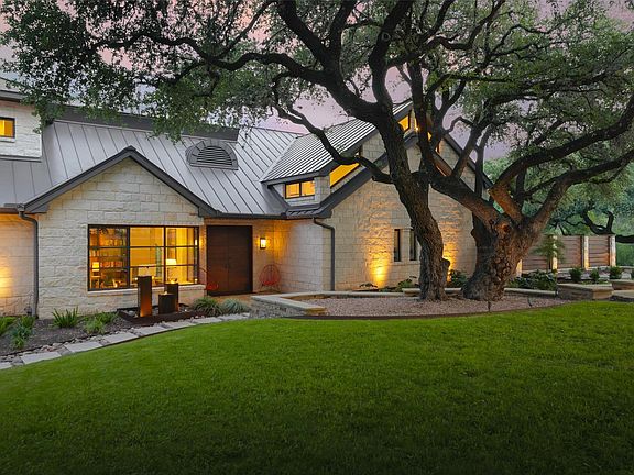 Welcome to 5301 Maryanna Drive, a stunning Westlake retreat perched above Lake Austin with sweeping Hill Country and water views. Nestled in one of Austin’s most coveted gated neighborhoods and within Eanes ISD, this home offers prestige, privacy, and unbeatable proximity to Austin Country Club, the lake, downtown, and more. Inside, soaring ceilings, rich wood floors, and a dramatic wall of arched steel-frame doors create a light-filled, luxurious ambiance. The expansive living and dining space is anchored by a sleek fireplace and flanked by custom built-ins, soft neutral tones, and curated lighting. The kitchen pairs minimalist cabinetry with a full-height wine fridge, paneled appliances, and a seamless flow into the family room framed by floor-to-ceiling glass and panoramic pool and lake views. Tucked just off the main living space, the serene primary suite features steel-framed windows and private patio access. The spa-like bath boasts warm-toned tile, dual vanities, vessel sinks, a soaking tub, and a frosted-glass walk-in shower, plus two large walk-in closets. Additional highlights include a corner office surrounded by oversized windows and a vaulted bonus room with limestone fireplace. Upstairs, a dramatic skylight stretches across the corridor, linking two wings. One side features three guest bedrooms with en-suite baths and a private balcony overlooking the backyard and Lake Austin. The opposite wing offers a private guest suite with full bath and a flexible light-filled studio, yoga room, or gym. Two 2-car garages include a car lover’s dream: epoxy floors and red cabinetry in a pristine showroom-like setting. Out back, an entertainer’s paradise awaits with a spacious covered patio, outdoor kitchen, putting green, and infinity-edge pool that melts into the treetops. Backing to a greenbelt and scenic trail, this property is a rare blend of luxury, nature, and convenience just minutes from the heart of Austin.