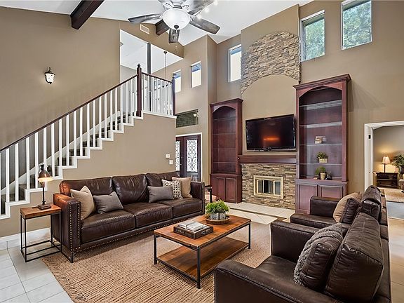 Built-in wood-burning fireplaceHigh ceilingStainless steel appliancesSunken great roomGranite countertopsPrimary suite downstairsWet bar