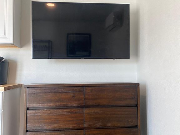 Stove topOwn drivewayFull size refrigeratorSmart tvFull bedSpacious loveseat and ottomanCabinet space