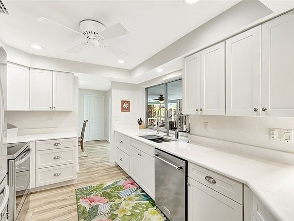 Wraparound dockQuartz countertopsQuiet cul-de-sacPeaceful canal settingReverse-osmosis filtrationInviting architectural detailsLight-filled layout